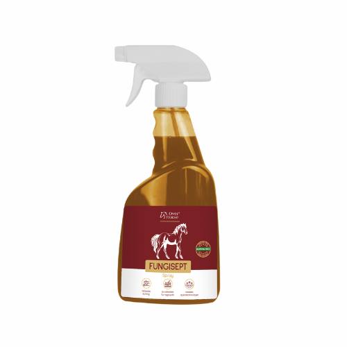 FUNGISEPT Spray is dedicated as a supplement to the treatment of fungal skin diseases. Recommended for horses that wipe mane and tail. Fungisept Spray supports the creation of a natural protective barrier of the skin, thanks to which it becomes more resistant to all kinds of fungal infections. The composition of FUNGISEPT Spray includes specially selected substances, including herbal and mineral substances, which have a beneficial effect on skin regeneration in the case of fungal lesions. The product supports hair regrowth, is gentle and completely safe for the skin.