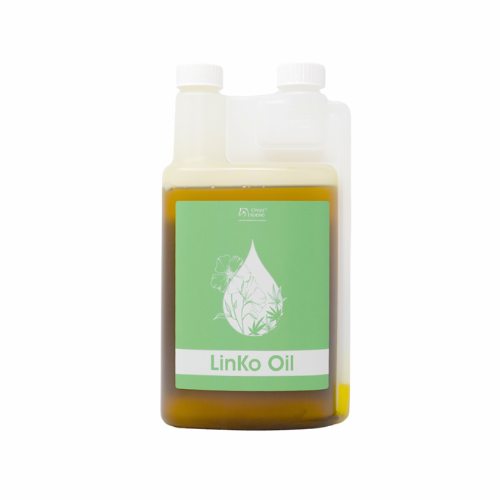 A mix of unrefined, cold-pressed oils: linseed oil (80%) and hemp oil (20%). An valuable dietary additive that is a source of slow-releasing energy and important unsaturated fatty acids. The hemp oil used in this product calms, effectively reduces stress, supports the circulatory system and all metabolic processes. It also has a great beneficial effect on the skin and coat. LinKo Oil protects cells against oxidative stress and supports regenerative processes. Additionally, it is a source of vitamins E, K, A, D, vitamins of B group, magnesium, manganese, zinc, phosphorus as well as Omega-3, Omega-6 and Omega-9 acids in the right proportions.