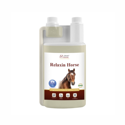 Liquid magnesium and herbs for nervous horses. Liquid supplement for nervous horses, containing herbs such as Valeriana officinalis (valerian) and Chamomilla recutita (common chamomile), which have a proven calming and soothing effect on the nerves. To strengthen the effect of the product, L-tryptophan and magnesium have been added to its composition. RELAXIN Horse effectively soothes nervous tension, improves concentration without disturbing motor skills.
